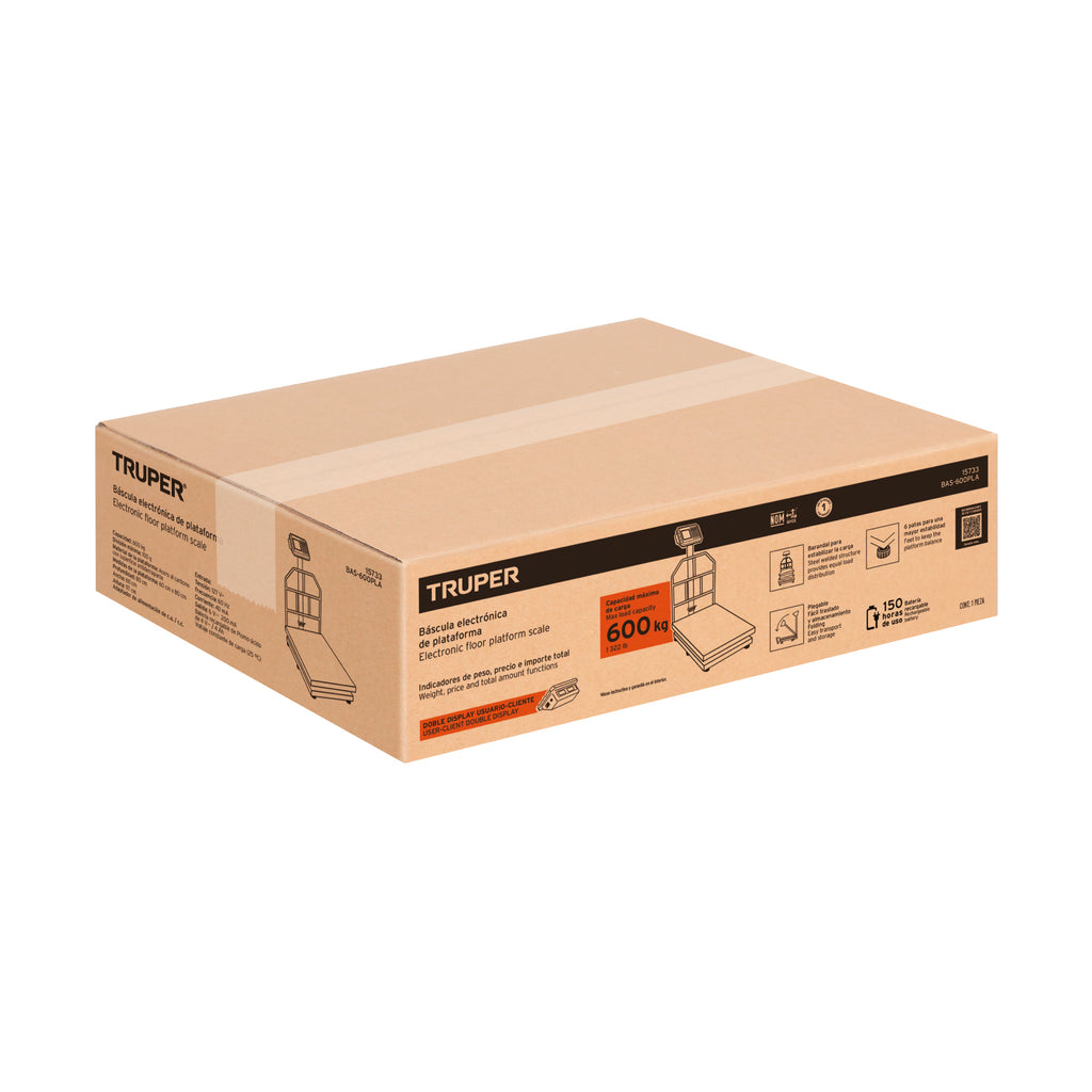 - Función TARA (peso neto sin recipiente), conteo de piezas, caja registradora y cálculo de cambio