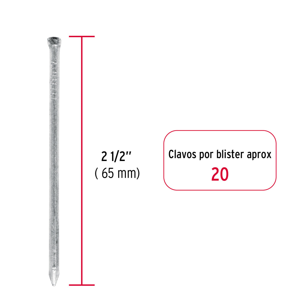 blíster con 20 clavos estándar 2-1/2" sin cabeza, Fiero