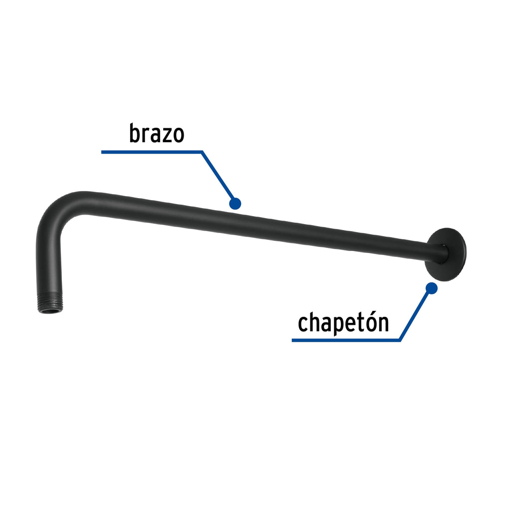 Brazo recto 50 cm con chapetón para regadera, negro mate