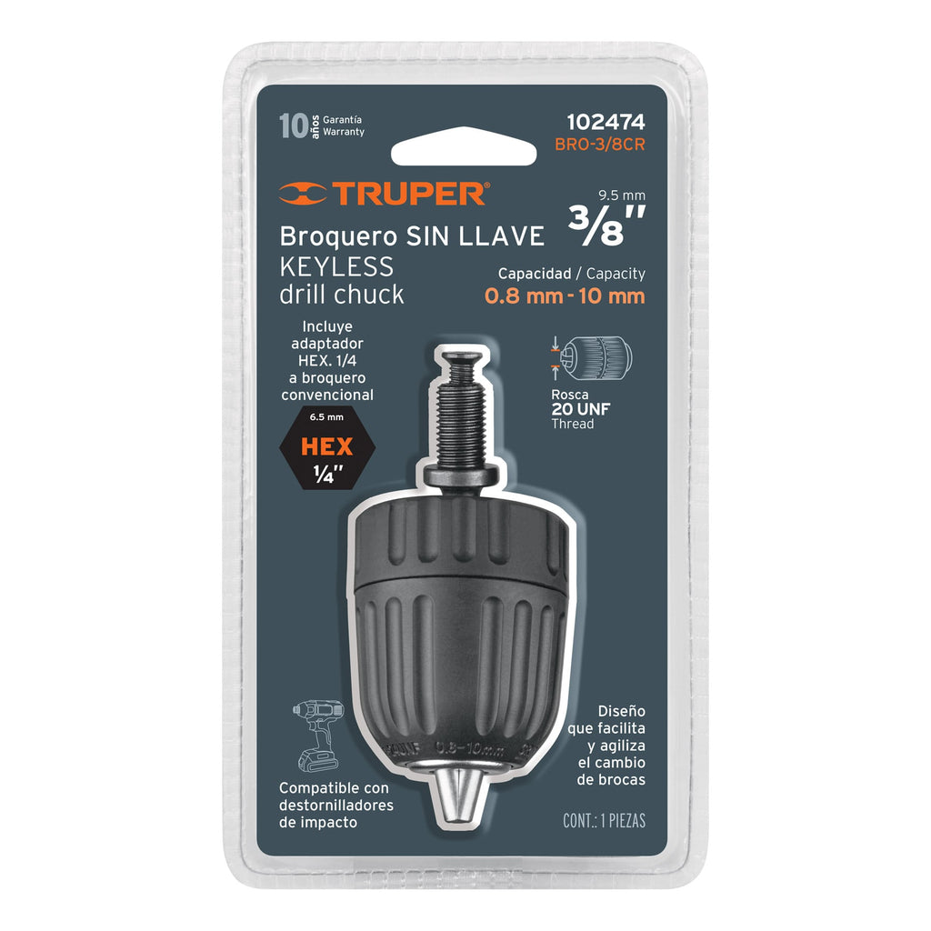 Broquero cierre rápido 3/8" con adaptador Hex de 1/4"