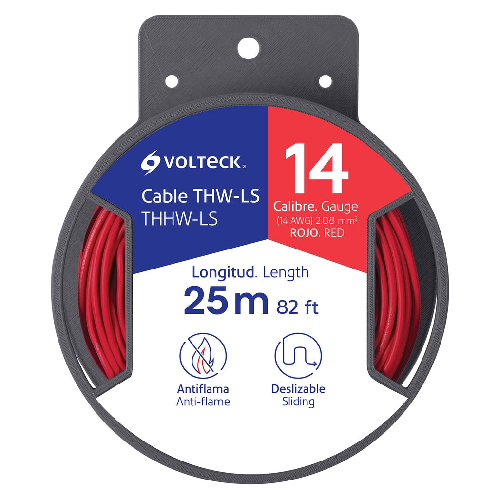 Carrete con 25 m de cable THHW-LS 14 AWG rojo, Volteck