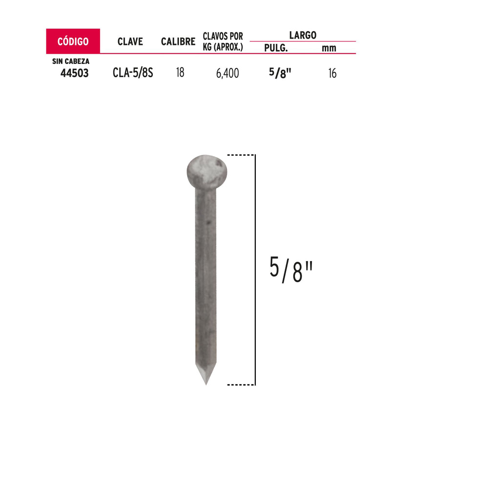 Bolsa con 1 kg de clavos alfilerillos de 5/8" sin cabeza
