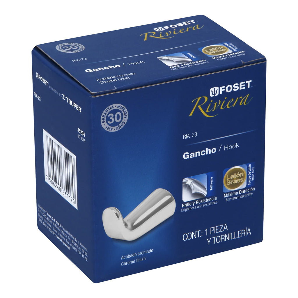 Gancho sencillo de latón acabado cromo para toalla, Riviera