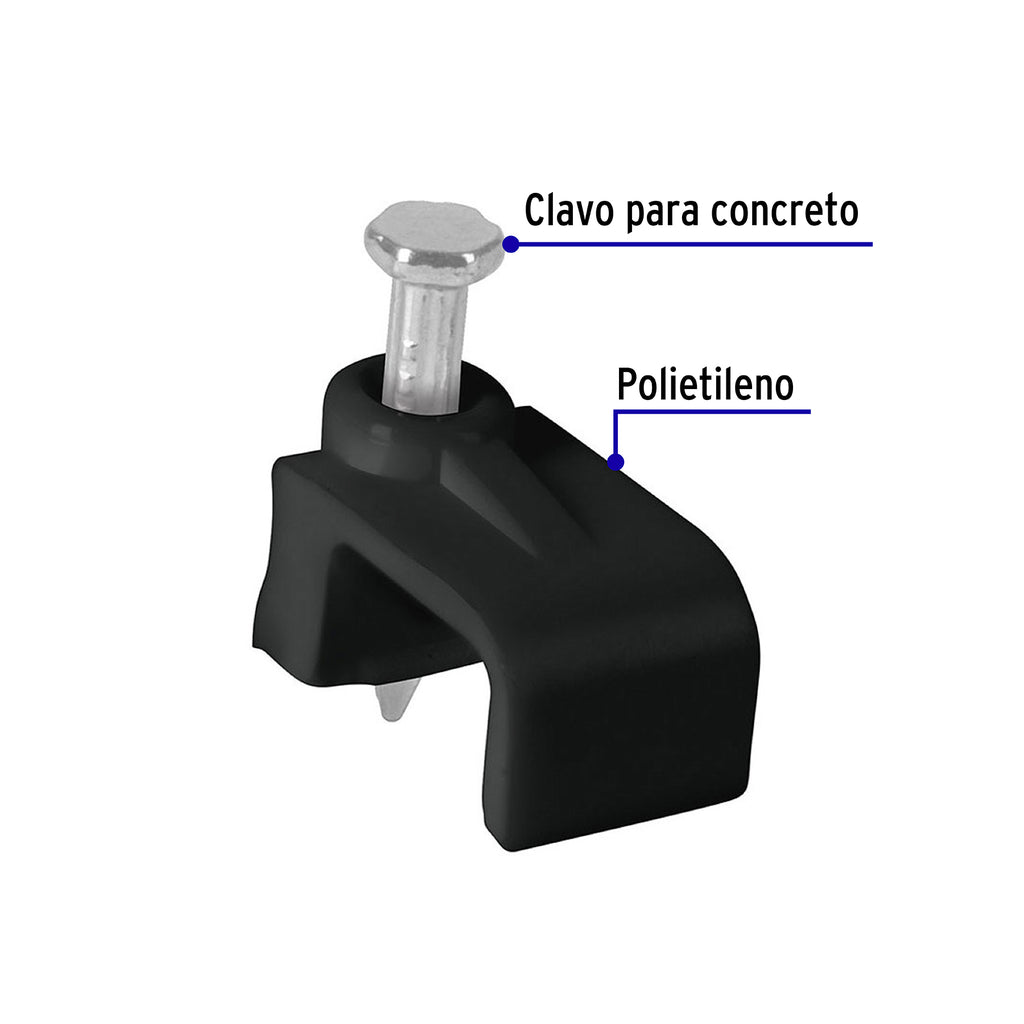 Bolsa con 20 grapas negras de 6 x 9.5 mm para cable plano