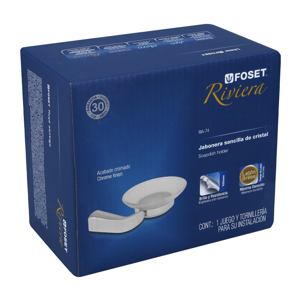 Jabonera de latón acabado cromo con plato de vidrio, Riviera