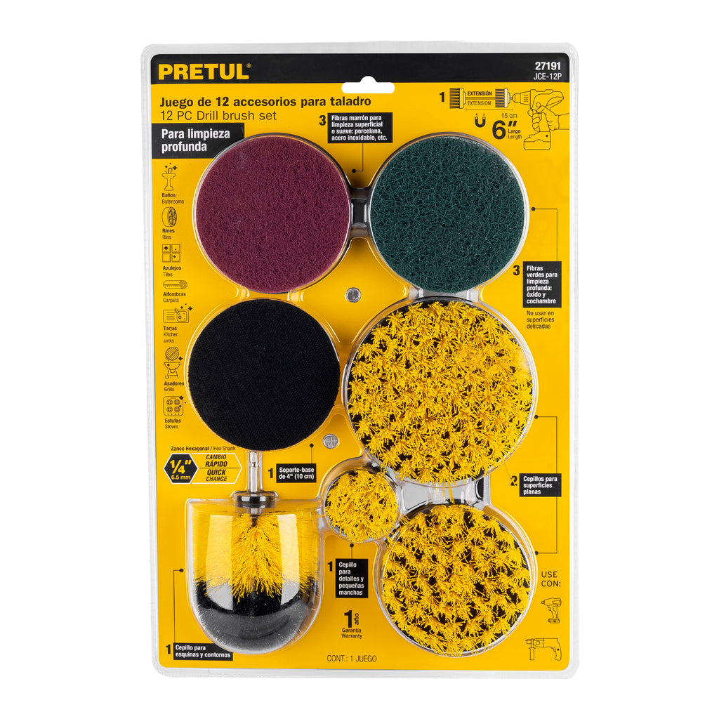 Juego 12 accesorios de limpieza y asentado para taladro, Pretul