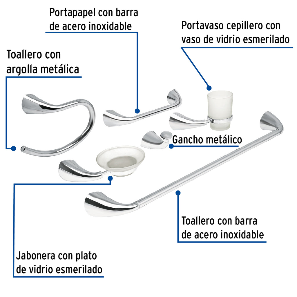 Juego de 6 accesorios para baño metálicos, Foset Aero