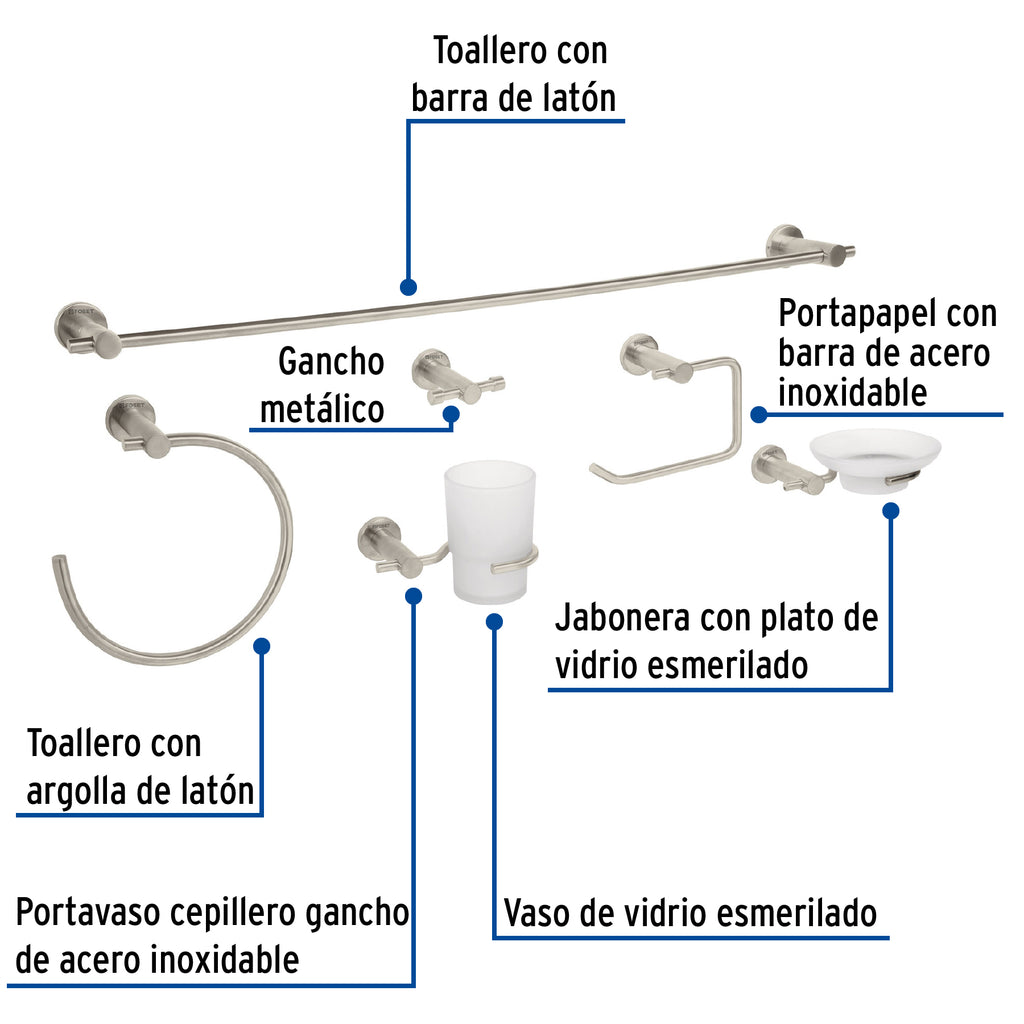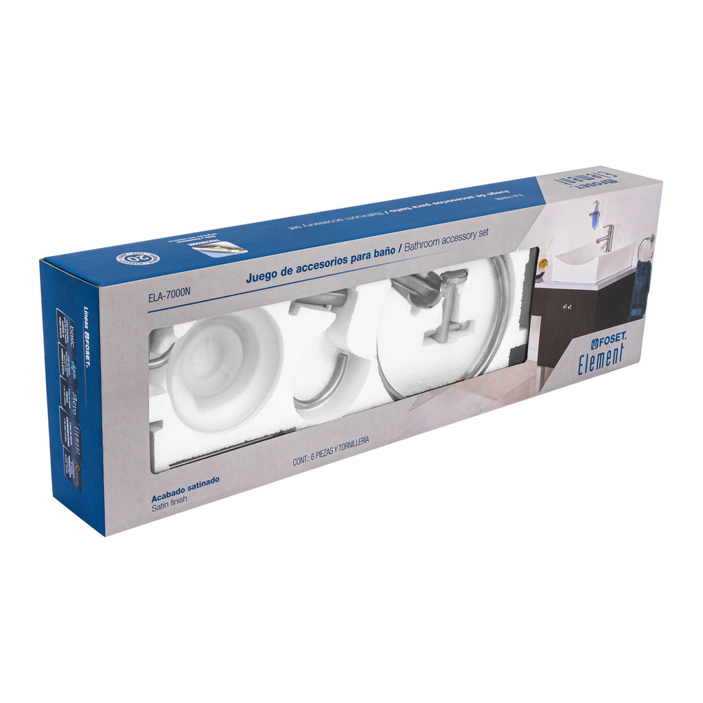 Juego de 6 accesorios para baño acabado satín, Foset Element