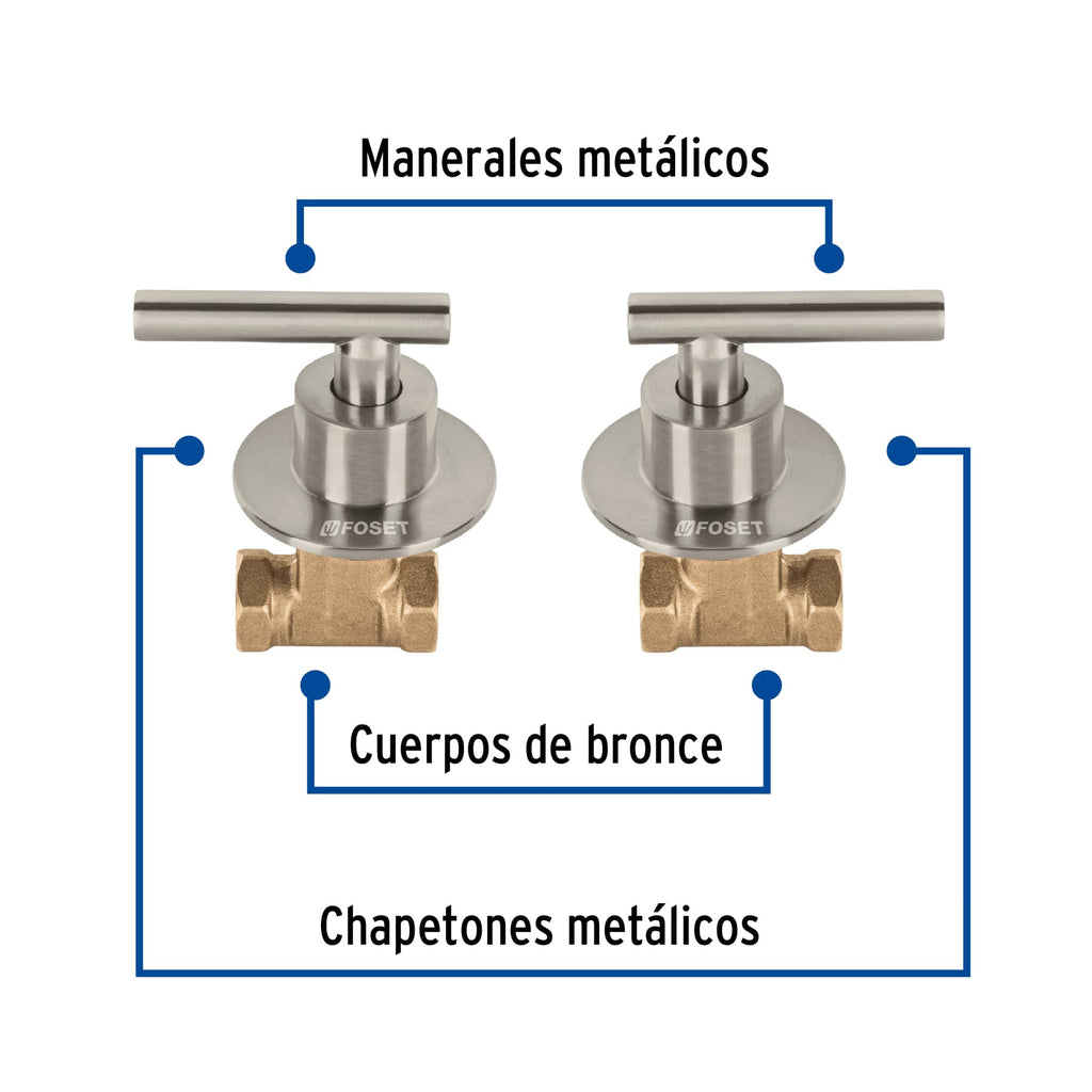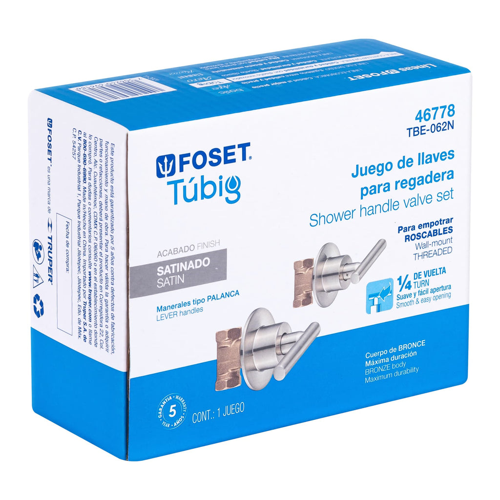 Juego manerales palanca, roscables para regadera, satín, Foset