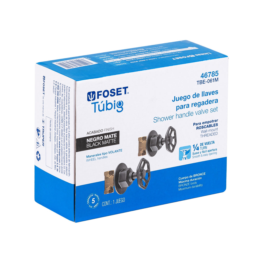 Juego manerales redondos, roscables para regadera, negro, Foset