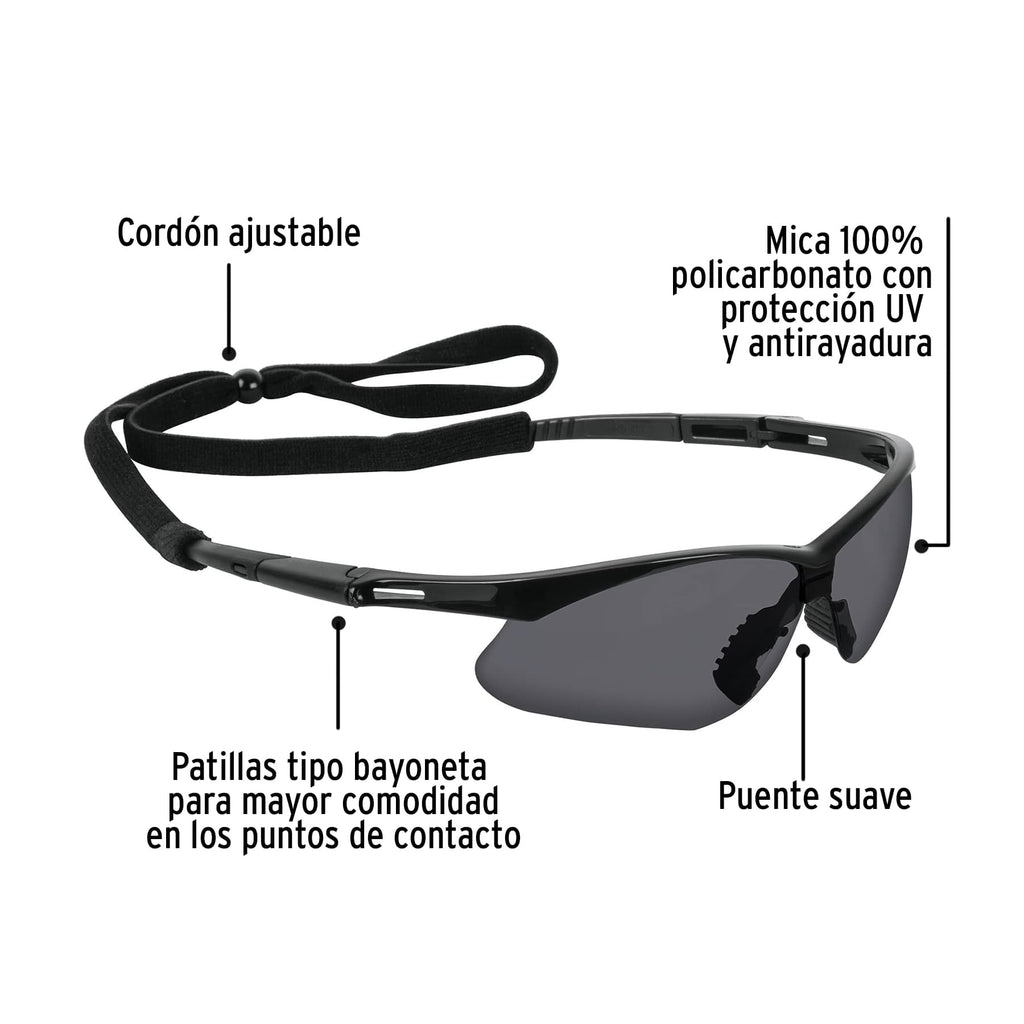 Lentes seguridad grises antiempaño con Cordón ajustable, Sport
