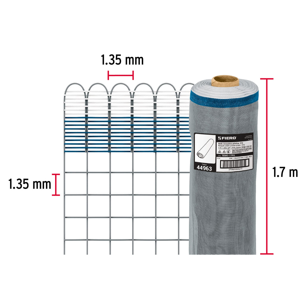 Rollo de 30 m x 1.7 m de malla mosquitera plástica gris