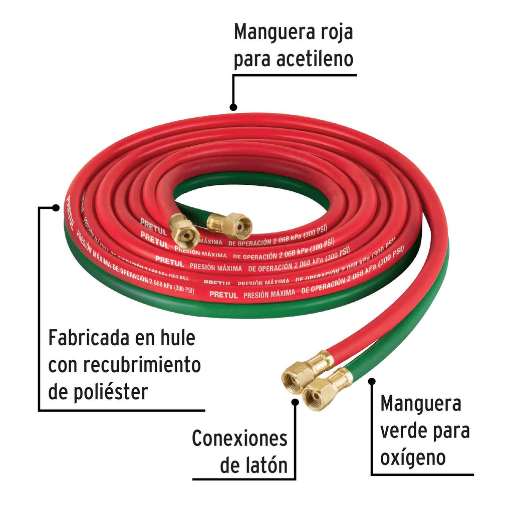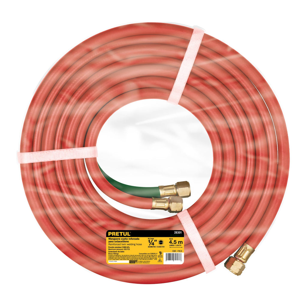Manguera cuata reforzada de 4.5 m para oxiacetileno, Pretul