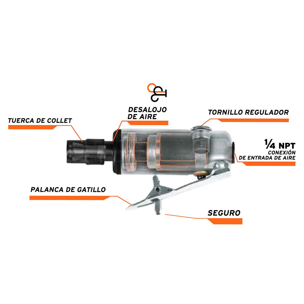 Rectificador neumático 1/4" recto, Truper