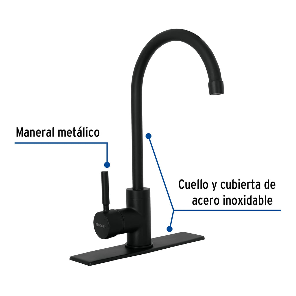 Monomando para fregadero, cuello alto, negro mate, Tubig