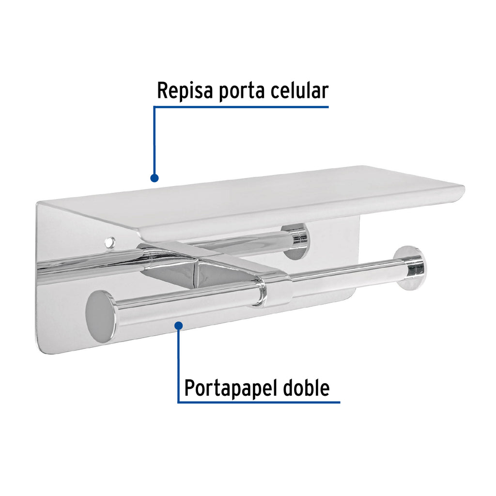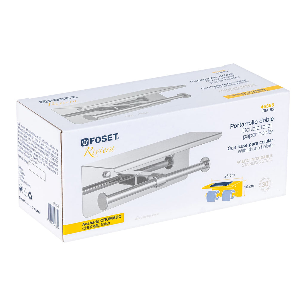 Portarrollo doble en cromo con soporte para celular, Riviera