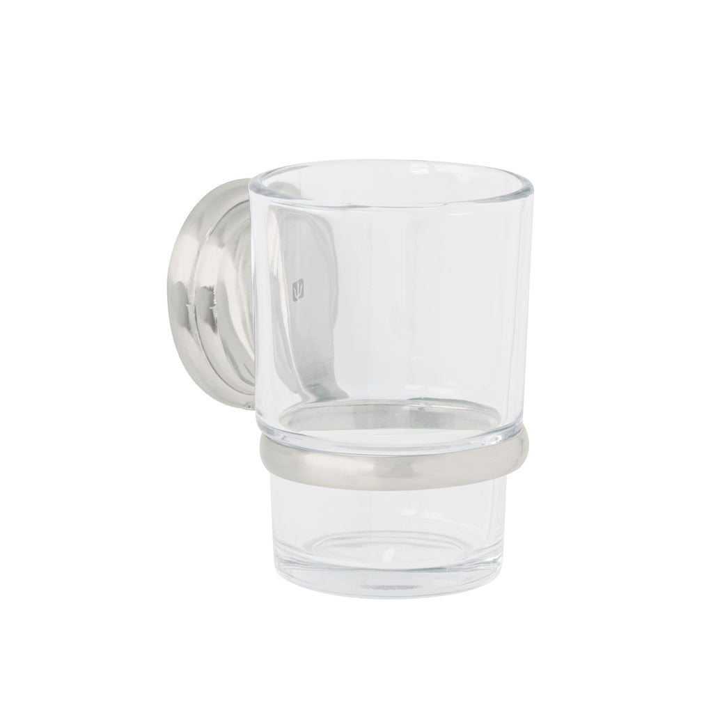 Portavaso cepillero satín con vaso de vidrio, Foset Aqua