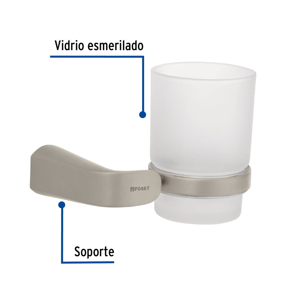 Portavaso cepillero satín con vaso de vidrio, Foset Riviera