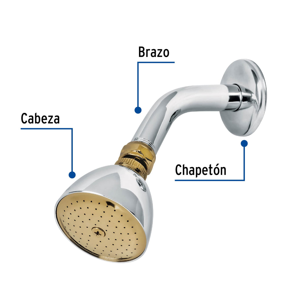 Regadera cónica 2-1/2" cromo-oro brazo y chapetón acero