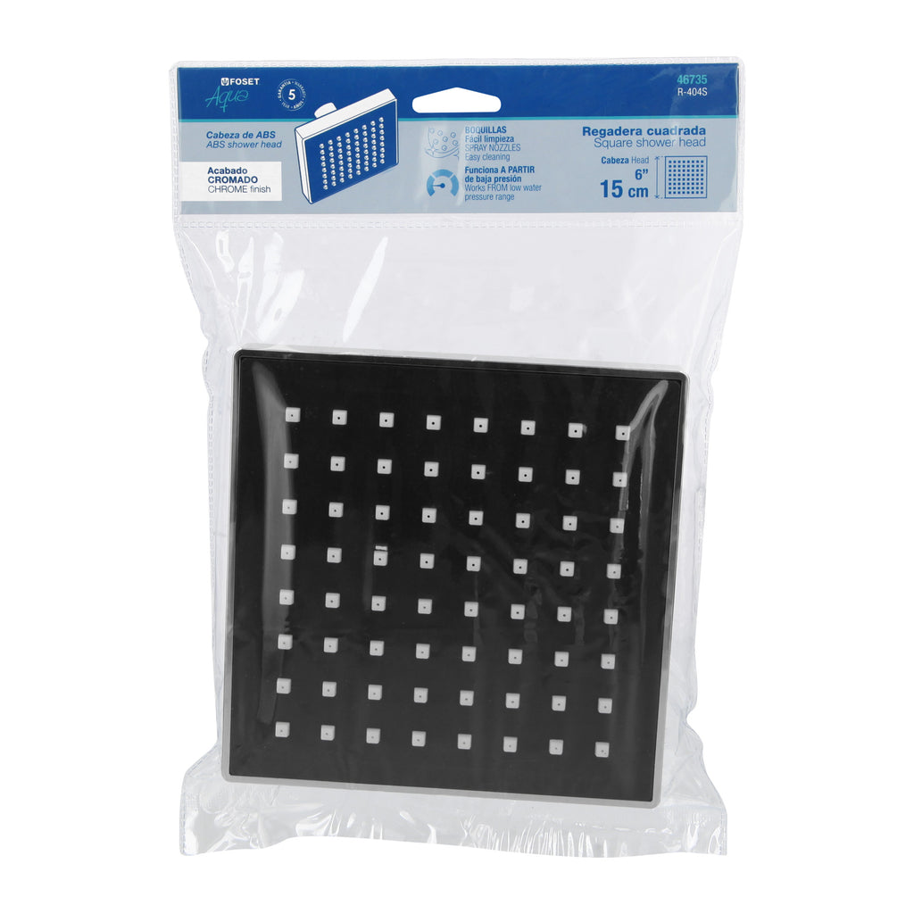 Regadera cuadrada ABS 6" acabado cromo sin brazo, Foset