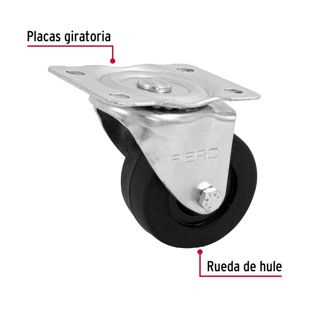 Rodaja hule 3", placa giratoria con buje, carga 60kg, Fiero