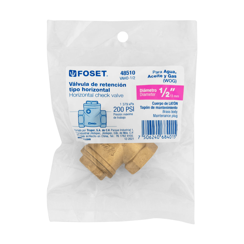 Válvula check horizontal de latón, 1/2", Foset